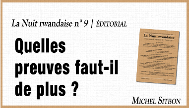 Une autre particularité de cette neuvième livraison de la Nuit rwandaise, c’est que son champ d’observation semble s’élargir en abordant des questions comme celle de la terrible guerre également de type génocidaire, entreprise au Cameroun dans le mouvement de la « décolonisation », dès 1955, première application à grande échelle des principes de guerre révolutionnaire élaborés en Indochine, qui sera abordée dans un cahier spécial qu’on aimerait appeler Nuit camerounaise, présenté avec une deuxième salve d’articles, d’ici peu.