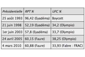 Mais les missions d’observation nationales et internationales relèvent à chacun de ces scrutins des dysfonctionnements graves qui entraîneraient leur annulation dans tout Etat normal, c’est-à-dire de type occidental. C’est que le RPT n’est pas encore véritablement sorti de la logique des élections sans choix que les financeurs européens et la Françafrique valident, implicitement, au nom de la théorie chiraquienne.